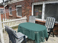 Die Wohnung besitzt eine eigene Terrasse mit Stühlen und Tisch.